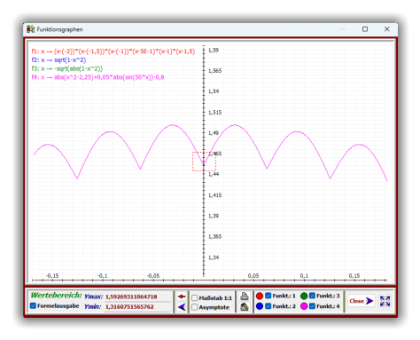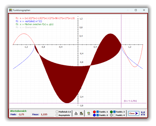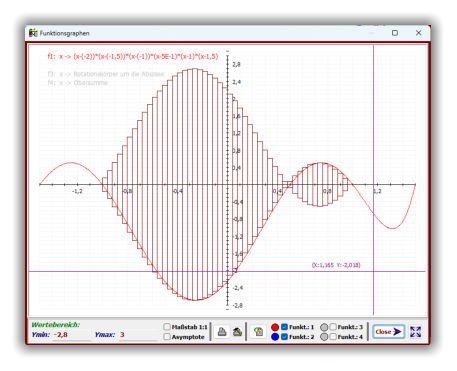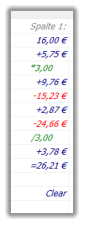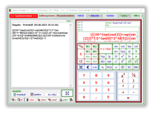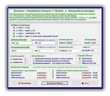 **  Add.- Streifen (4 Spalten, aufgeklappt)  ** **  Add.- Streifen (Spaltenausgabe)  ** **  Allg. Protokoll in Zeilendarstellung ** Rechner in der mini-mierten. Darstellung **  Standard Farbkreis (Subtrakt.) ** **  Komplementärfarbe (additiv) **gewählte Farbe: $996633 ****     Aktiver Farbkreis     ****für die gewählte Mischfarbe $BF8045 **  Farbkreise nach Farbänderung (grau) <-> 128, 128, 128  ** **  ASCII - Zeichensatz   $80-$FF  ** ** schnelle Berechnungen aus zwei Angaben ** Brutto, Netto, Tara, Prozent ***  Zahlen zu den (wählbaren) Basen 2-36  *** Echtzeit: irgendeine Eingabe -> Konvertierung **  UniCode „Rahmen- u. Blockelem.“ incl. Keys  ** **  ASCII - Zeichensatz   $00-$F7  ** für wählbare (oben links) Schriftfonts **  UniCode „Smileys“ incl. Schlüssel  ** **  Plotten: f1 bis f4; Fenster- oder full Screenausg  ** Fourierreihe: Darstellung einer Sägezahnspannung (näherungsweise) **  Rotationsvolumen (Sektglas): Schrittz. 20  ** **  Fläche zwischen f(x) und Abszisse  ** **  Fläche zwischen 2 Kurven, Mausz. als Fadenkreuz  ** **  Rotationsvolumen:  Schrittzahl 2000  ** **  Rotationsvol. Kugel  ** **  Rotationsvol. Kugel  ** **  Rotationsvolumen, Fadenkreuz   ** **  Plotten: f1 bis f4  ** **  Vorgabenfestlegung: Ableitungen  ** **  Vorgabenfestlegung: Integration  **