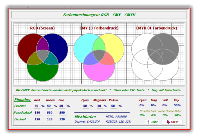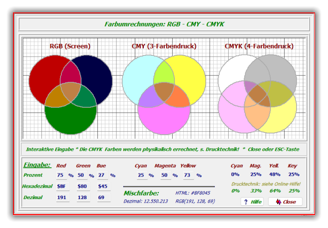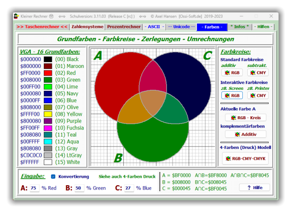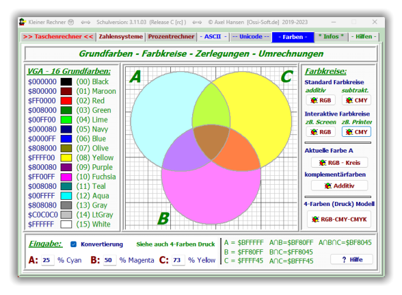 * Zugehöriger Teilausschnitt * ** Markierung des gewünschten Zoomfensters ** * Weiterer Teilausschnitt * ***   Farbkreise - Umrechnungen   ***incl. techn. Druckerfarbenberechnungen Rechner-Layout unter Windows 11