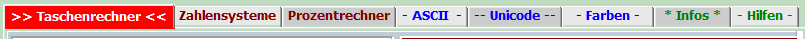 Abschnitt: Utilitys „Zahlenkonvertierung“, „Prozentrechnung“, „ASCII Code“ und „Unicode“