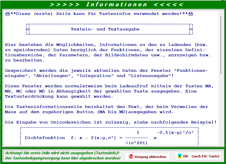 Tasteninformationszeile als auch der gesamte Ausgabetext können hier bearbeitet bzw. angepasst