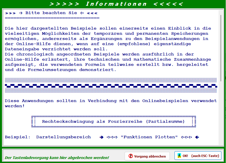 Auch dieses Textfenster kann mittels der CheckBox - „Textausg. bei Load“ unterdrückt werden!