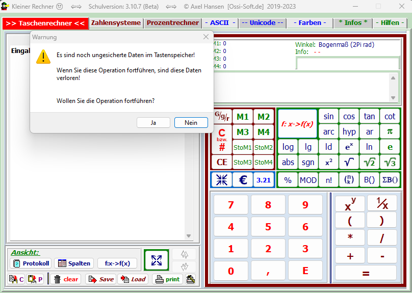 Soll das Programm beendet werden und es befinden sich noch ungesicherte Memory-Daten in den