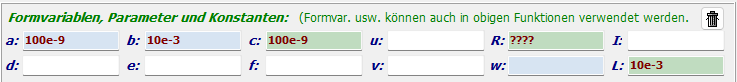 Formvariablen usw. ( a..f, u, v, R, W, I, L ) können verwendet werden. Groß- und Kleinschriften