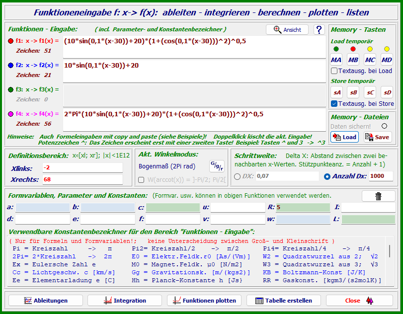 der des zugehörigen Funktionsgraphens. Die aktuelle Formellänge (Zeichen:) wird ausgegeben.