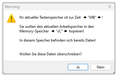 Tastenspeicher A bis D, so erfolgt die nachstehende Warnung.
