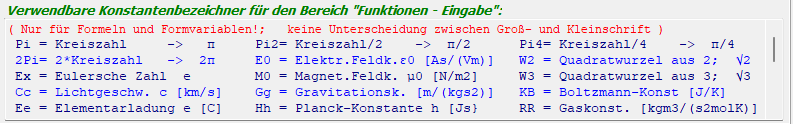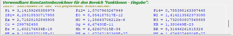 Zur Information sind nachfolgend die Zahlenwerte der einzelnen Konstanten dargestellt, durch die