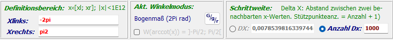 aktuellen Einstellung bezüglich der Winkelargumenten in der Hauptmaske abhängig sind.